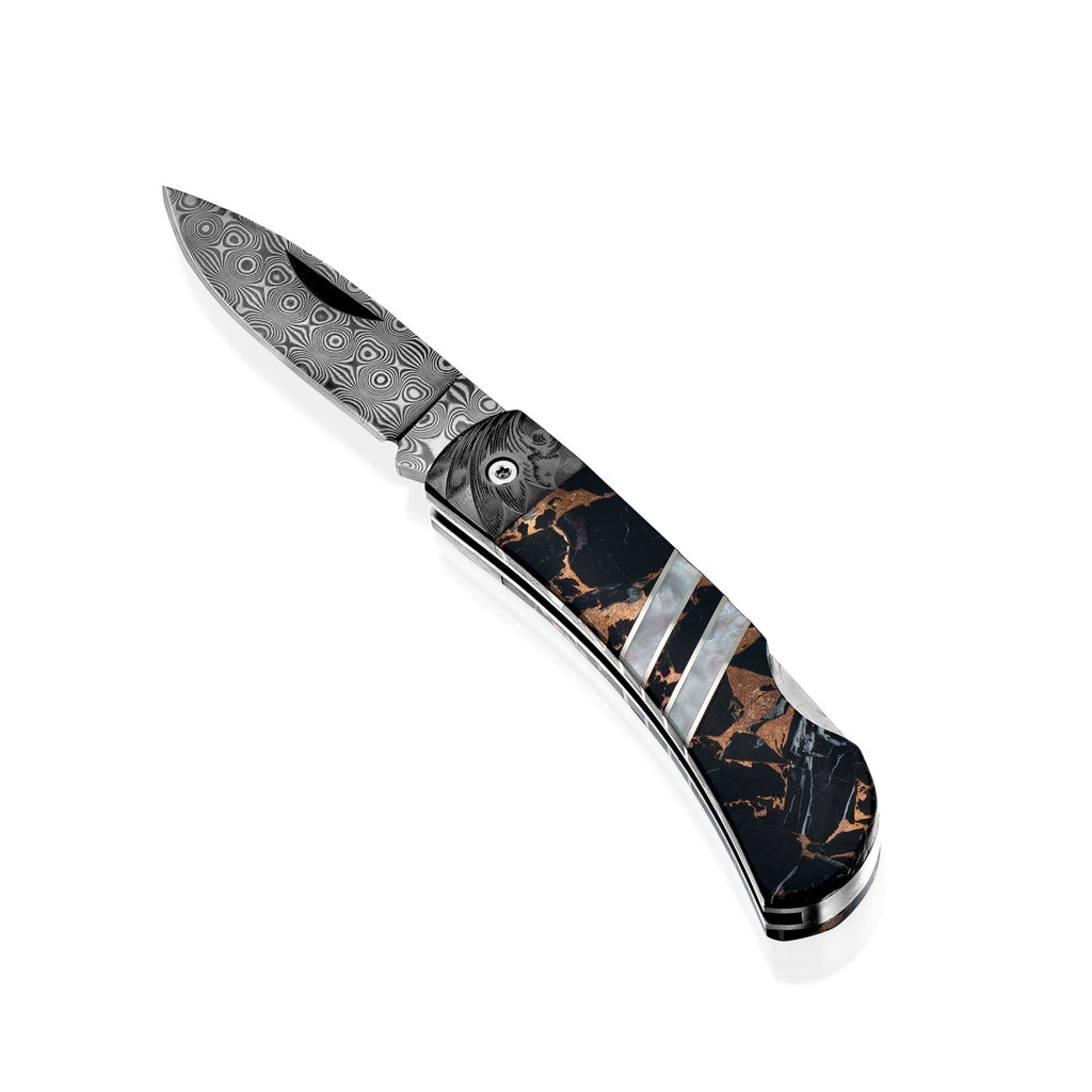 Blade Steel: 110 layers of stainless Damascus (Inox 690 + 440C)