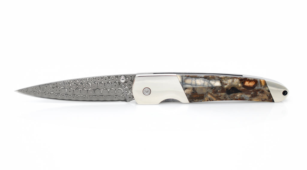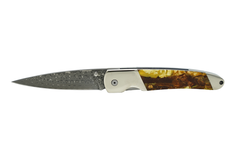 Raffir Mammoth Fusion is made of real mammoth tusk fragments dating back to the last ice age (10,000-40,000 BP). We have developed a unique high-pressure treatment to stabilize and fuse these fragments into solid blocks. The result is a beautiful and hard composite that is densely packed with mammoth ivory.