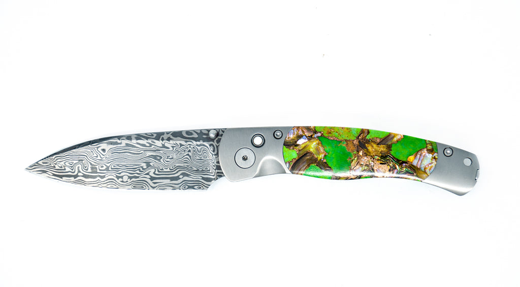 El Rey Damasteel Button Lock Collection W/Pocket Clip