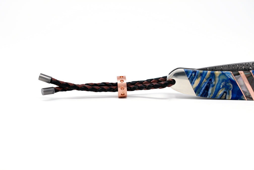 Materials: Fossilized Mammoth Molar "Blue" w/Copper and Black Lip Mother of Pearl Strips
