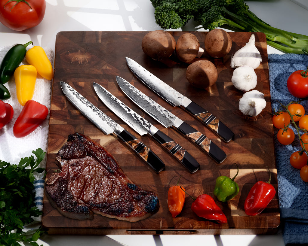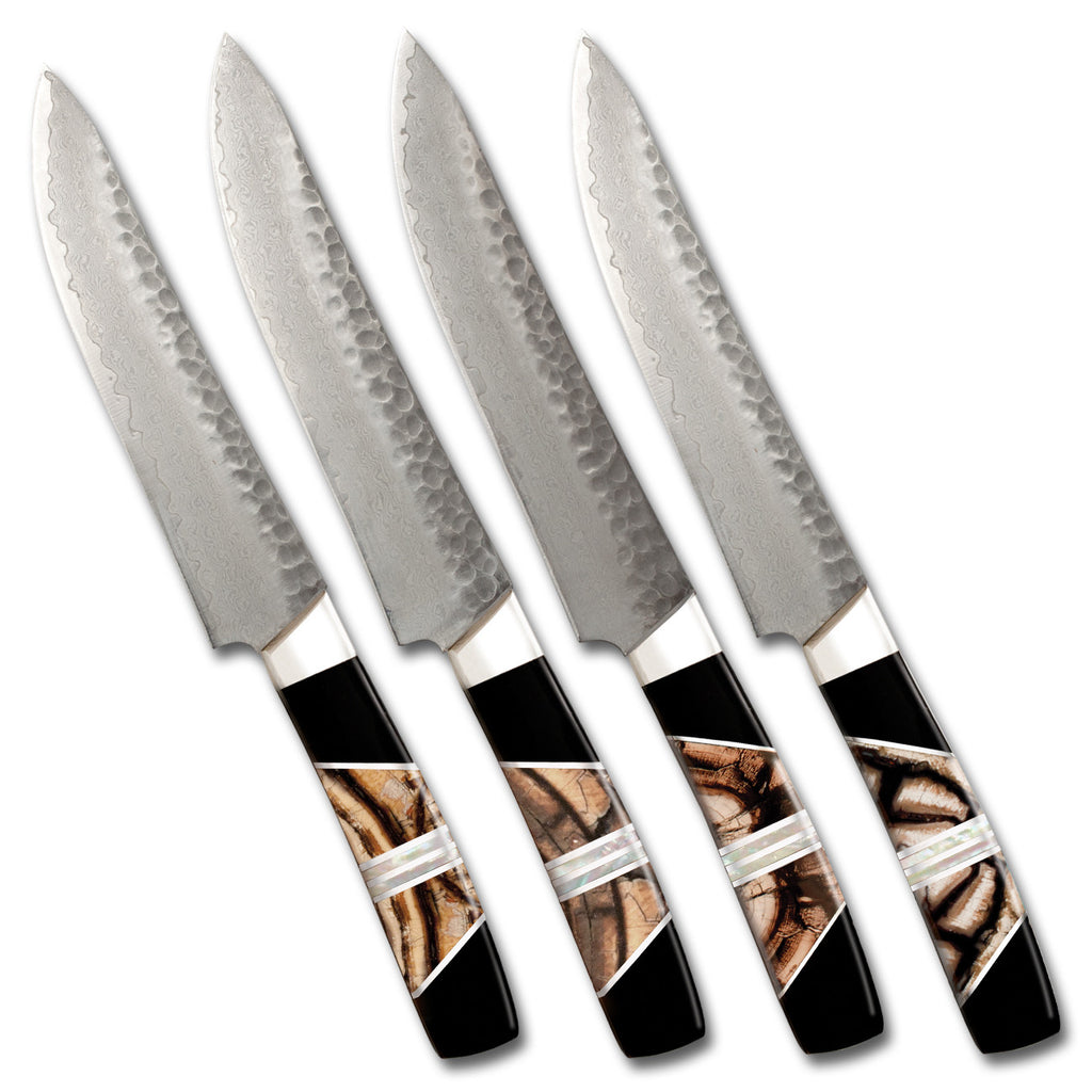 Hammered Damascus Fossilized Mammoth Tusk Steak Knives (set of four)